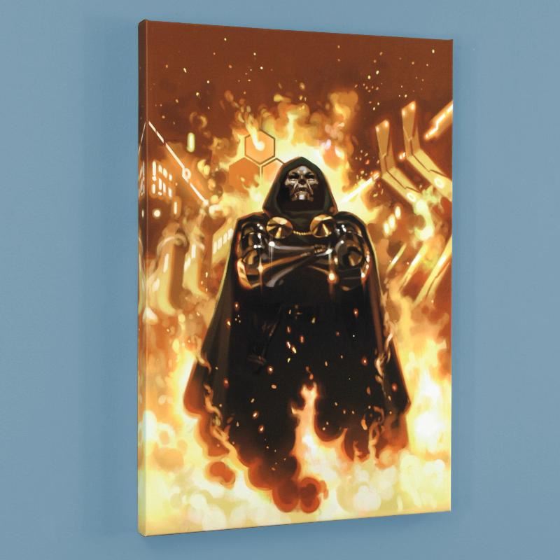 A piece of comic book history, this limited edition, from original art by Daniel Acuna, depicts a Menacing Dr. Doom. Spanish artist Daniel Acuna cites artists like Jack Kirby and Simon Bisley as his early artist influences. After doing some occasional cover art for Marvel, Acuna signed an exclusive contract with Marvel in 2007. "FF # 2" is a limited edition numbered giclee on canvas by Daniel Acuna presented by Marvel Comics. This piece comes gallery wrapped. Includes Certificate of Authenticity! Measures approx. 18" x 27" (image).