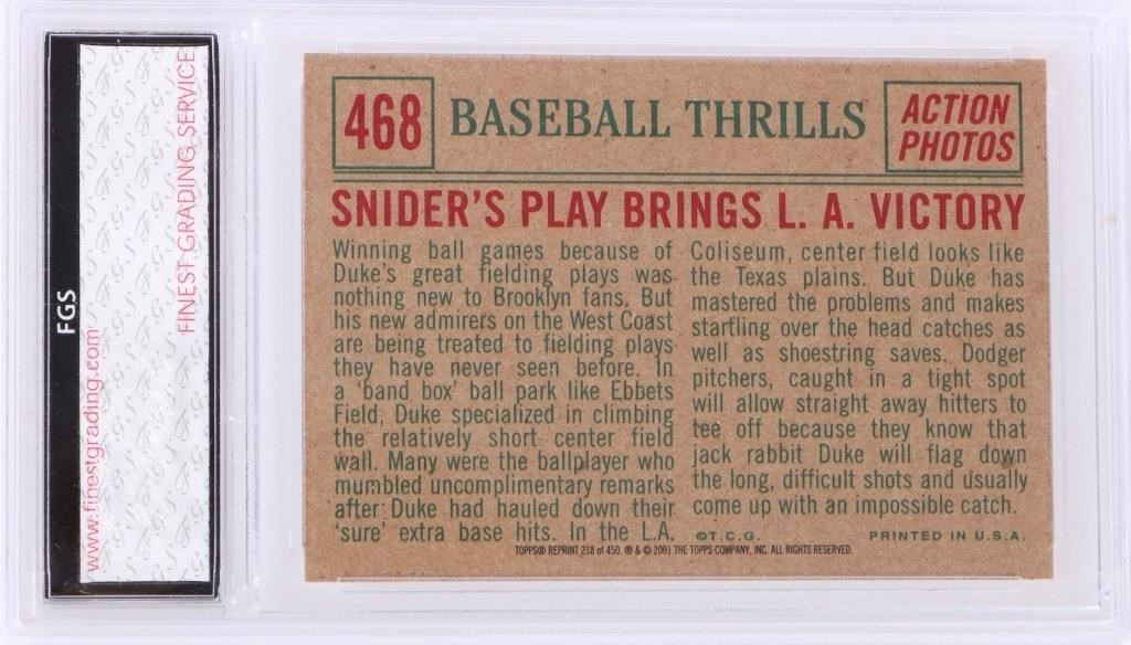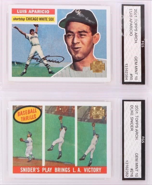 FGS GM10 2001 Topps Archives Duke Snider #218 & Luis Aparicio #50 graded and slabbed by Finest Grading Service.
