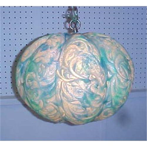 COLORFUL 1950S FIBERGLASS BALL LAMP AND CHAIN 18 IN DIAM. GOOD COND