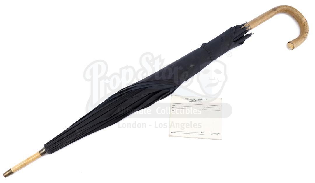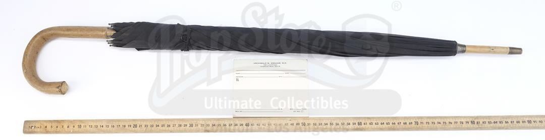 Dr. Archibald "Moonlight" Graham's (Burt Lancaster) umbrella and prescription pad from Phil Alden Robinson's sports drama Field of Dreams. Ray Kinsella (Kevin Costner) briefly found himself in 1972, where he met the elderly Dr. Graham, who carried his signature umbrella. They spoke at length amongst the doctor's medical tools and prescription pads.