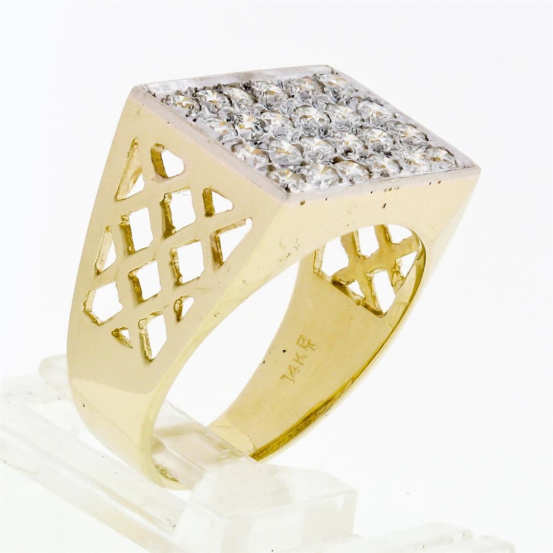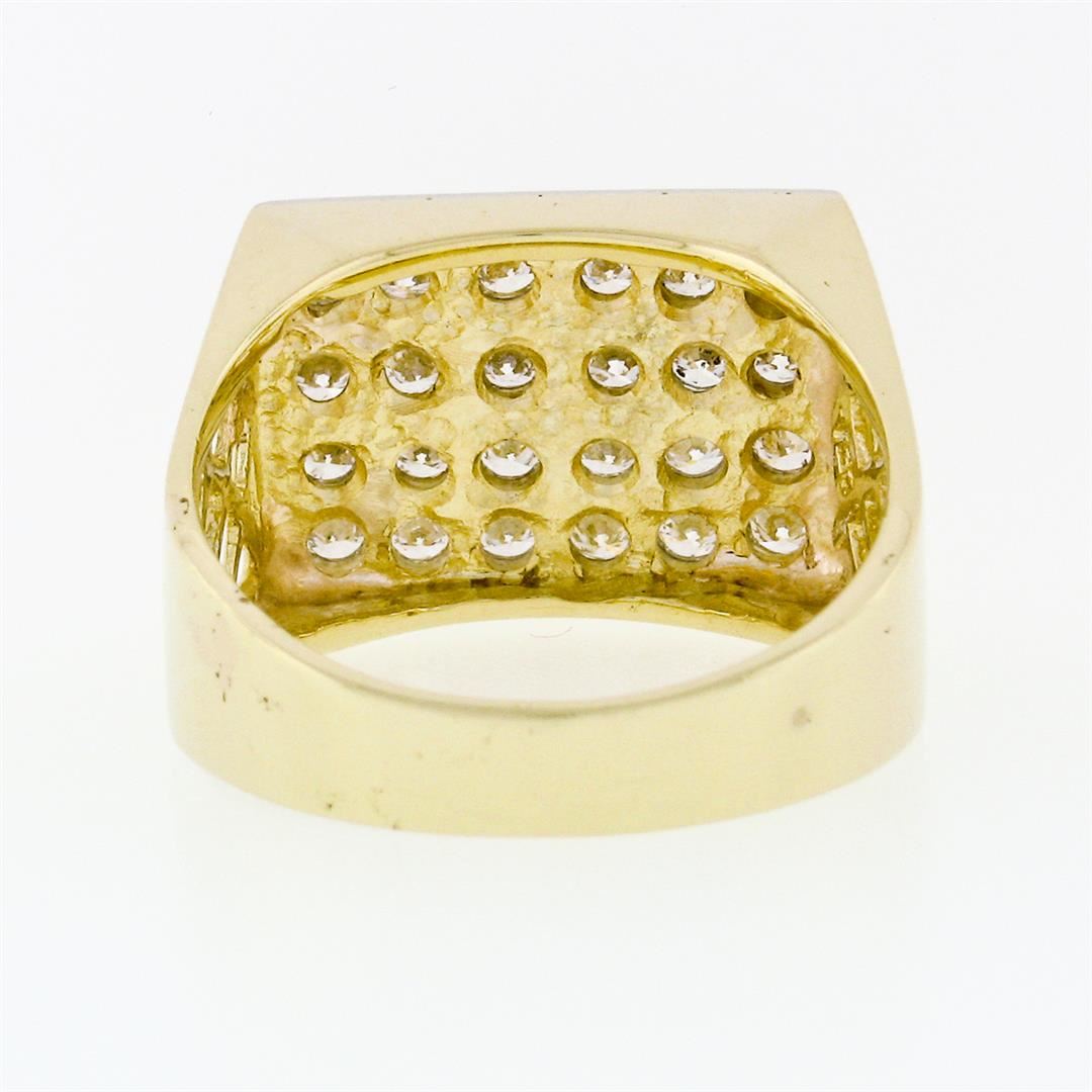 An estate solid 14k yellow & white gold men's band ring, with 24 round brilliant cut natural diamonds (G/H - VS1/VS2 w/ a few SI1 ; 1.44ctw). The ring is size 10, weighs a total of 9.49 grams, and measures 13.14mm wide.