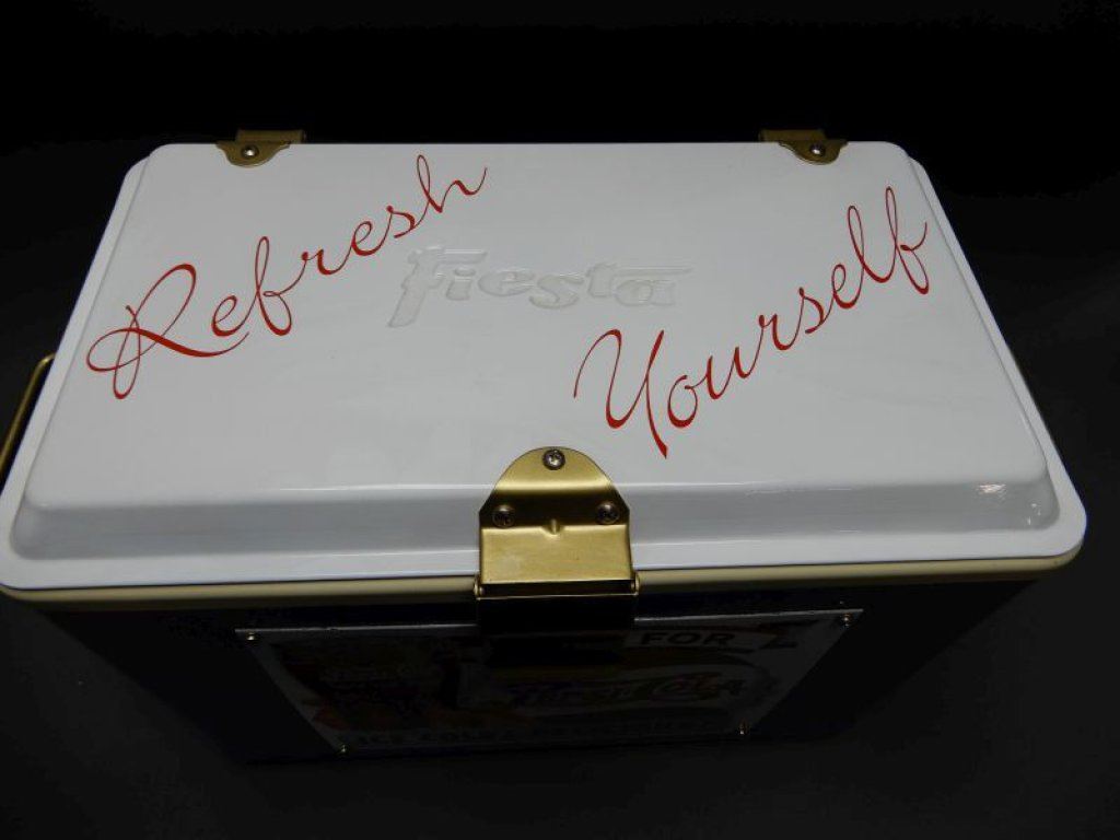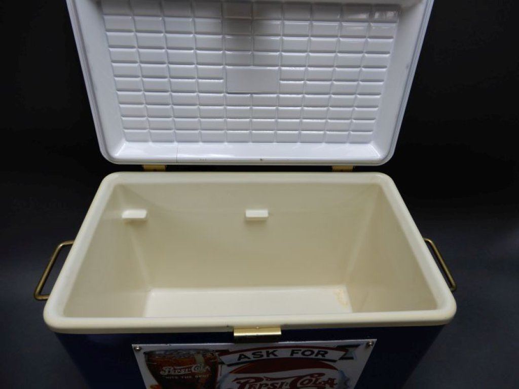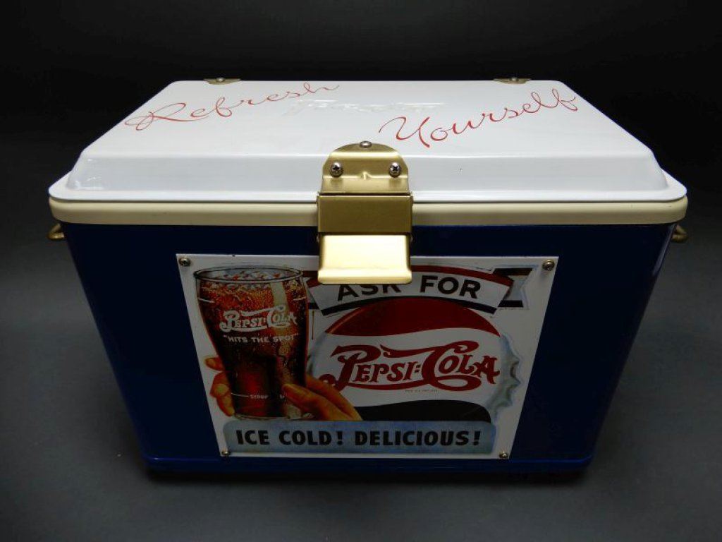 FIESTA COOLER RESTORED TO PEPSI-COLA 19 1/2" X 12 1/2" X 13 1/2" LOCATION: LOWER RIGHT