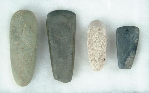 FIFTEEN CELTS. Limestone, slate, diabase, granite. Early Woodland to Mississippian, Circa 1000BC style-1500AD style. SIZES: Largest is 9in. l x 3-1/2in. w; smallest is 2-1/2in. l x 1-1/2in.. CONDITION: Good. 9-25984-129 The Tennessee Collection of Prehistoric Indian Artifacts from the Allen Graves Estate. SPECIAL NOTE: We do not regularly sell Prehistoric Indian stone artifacts and therefore have very little experience and no expertise in this area. All of the following lots have come from the Collection of the Late Allen Graves of Tennessee. The collection was inherited some years back by his daughter, who now lives in Maine. This collection was consigned to us directly from her. We employed someone to generally identify styles and types, but as stated above, due to our lack of expertise in this field, we can not guarantee the age or origin of the following pieces. We are relying on you, the buyer, to determine to your satisfaction the origin and age of each item in the collection.