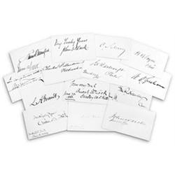 A fine lot of 15 Union general signatures, all penned on individual beige cards and in fine condition. Included are JOSEPH R. HAWLEY, NEAL DOW, LEWIS A. GRANT, CLINTON B. FISK, JOHN W. NOBLE, WALTER Q. GRESHAM, H. B. PAYNE, CARL SCHURZ, ANSON G. MCCOOK, JOHN HARTRANFT, JOHN C. BLACK, CHARLES F. MANDERSON, STEWART WOODFORD and WILLIAM F. FRENCH. Some have the place and date added. Overall very good.