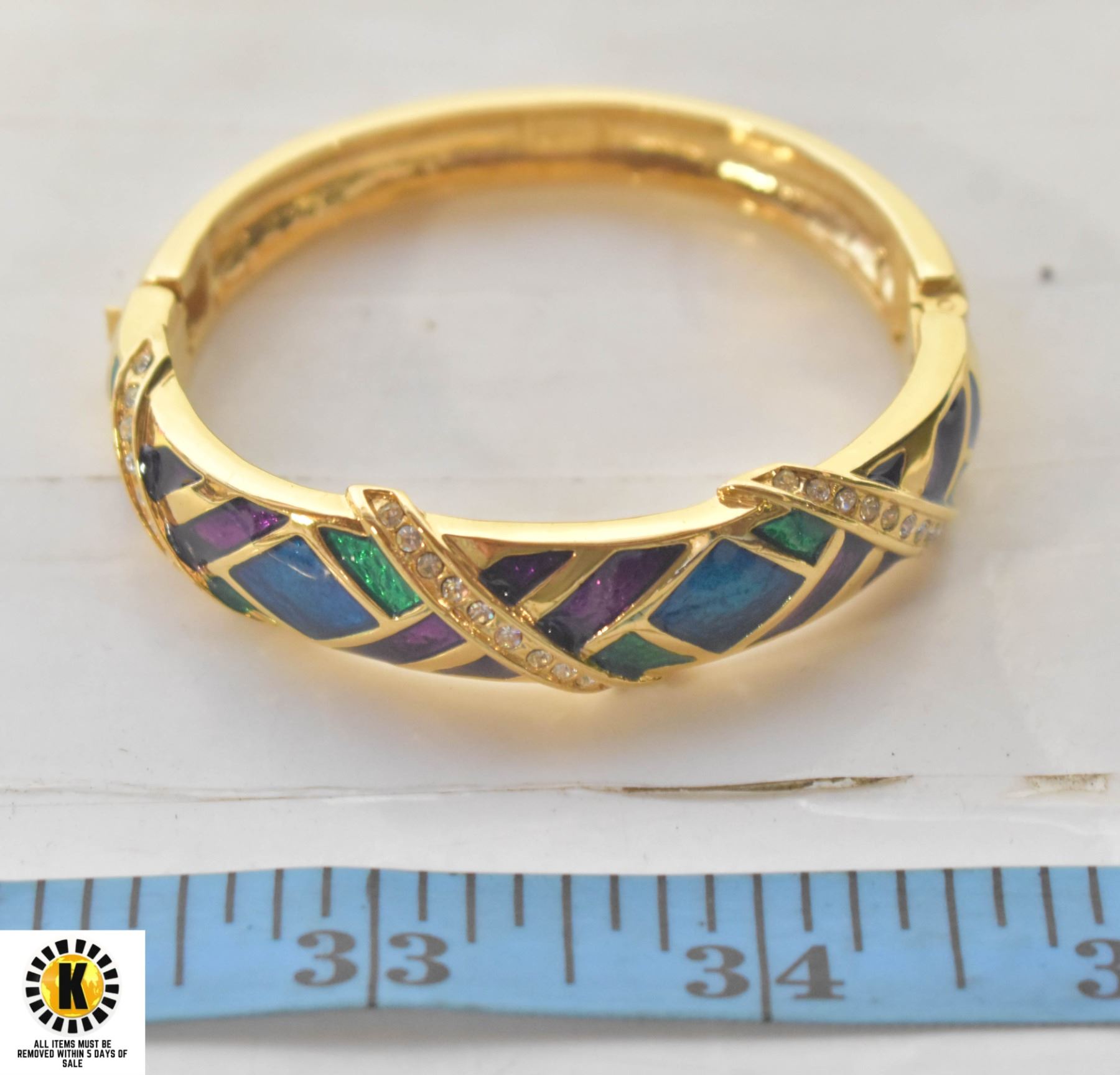 COSTUME JEWELRY BRACELET WITH CRYSTALS, PURPLE AND GREEN COLOUR DESIGN