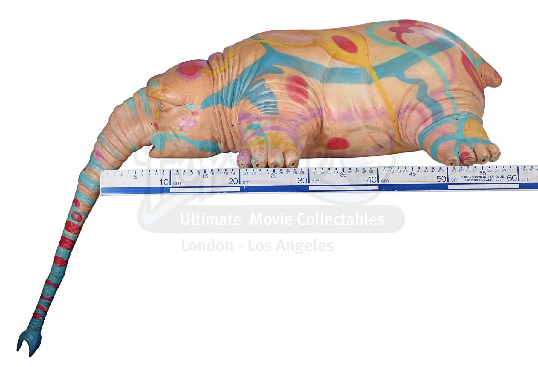 This fibreglass paint test was created by the production to finalise the colourful pattern that would appear on the creature's hide in the film. The art department worked from an initial illustration to make Picasso three-dimensional, and after his shape was approved the pattern was applied. Once final approval was received from director Besson, the team began work on painting the silicone puppet.