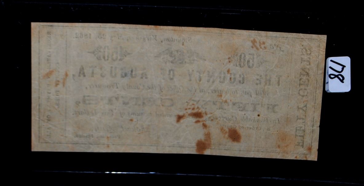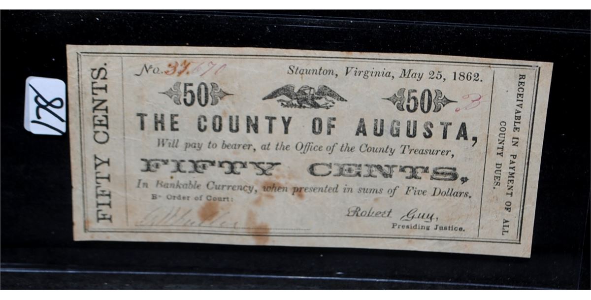 FIFTY CENT COUNTY OF AUGUSTA FRACTIONAL CURRENCY - MAY 25, 1862 - SELLER GRADES @ VF
