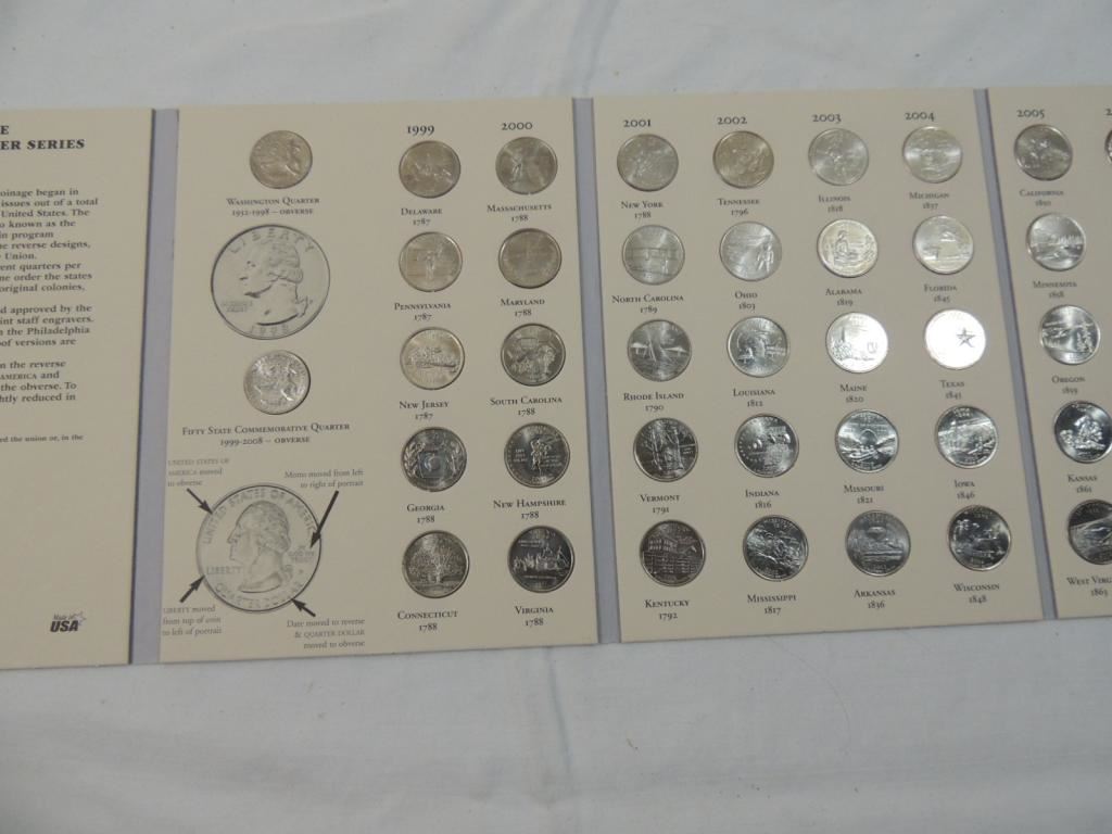FIFTY STATE COMMEMORATIVE QUARTERS 1999-2008 COMMEMORATIVE ALBUM, NON MISSING AS SHOWN SEE PHOTO FOR MORE DETAILS.