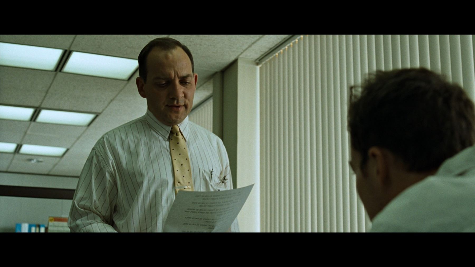 A Fight Club rules sheet from David Fincher's drama Fight Club. The Narrator (Edward Norton) was confronted by his boss Richard Chesler (Zach Grenier), who discovered a sheet of Fight Club rules in the office printer tray. These rules were conceived by Tyler Durden (Brad Pitt) after the club's membership started to rapidly increase.