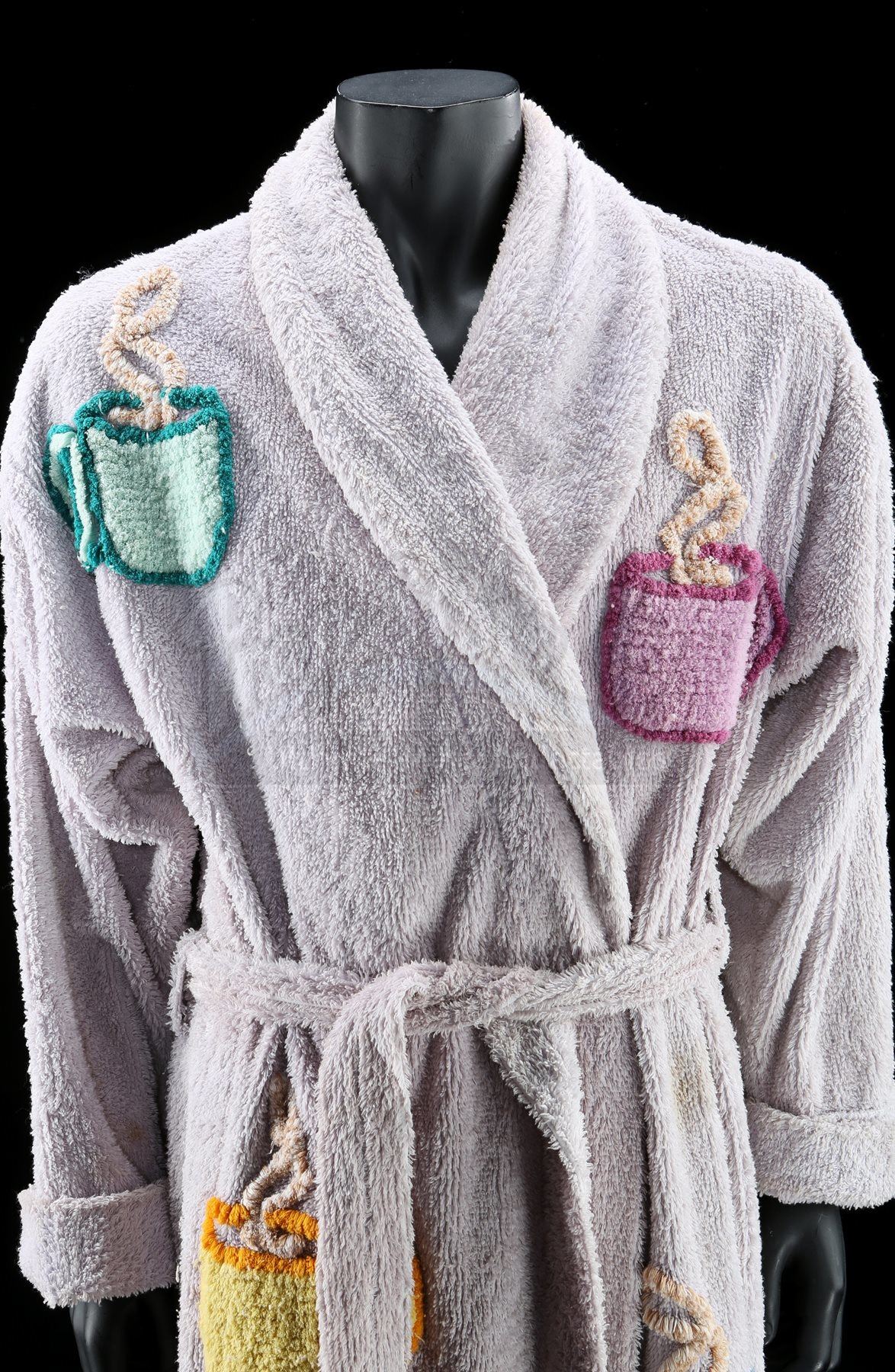This robe is produced by Canyon Group and is made from plush chenille material. Various colourful coffee mugs are embroidered throughout the robe, as befits Tyler’s eclectic aesthetic. The robe fastens with a tie around the waist, is marked as size extra large and displays intentional wear, including various stains. Accompanying the lot is a certificate of authenticity from 20th Century Fox.