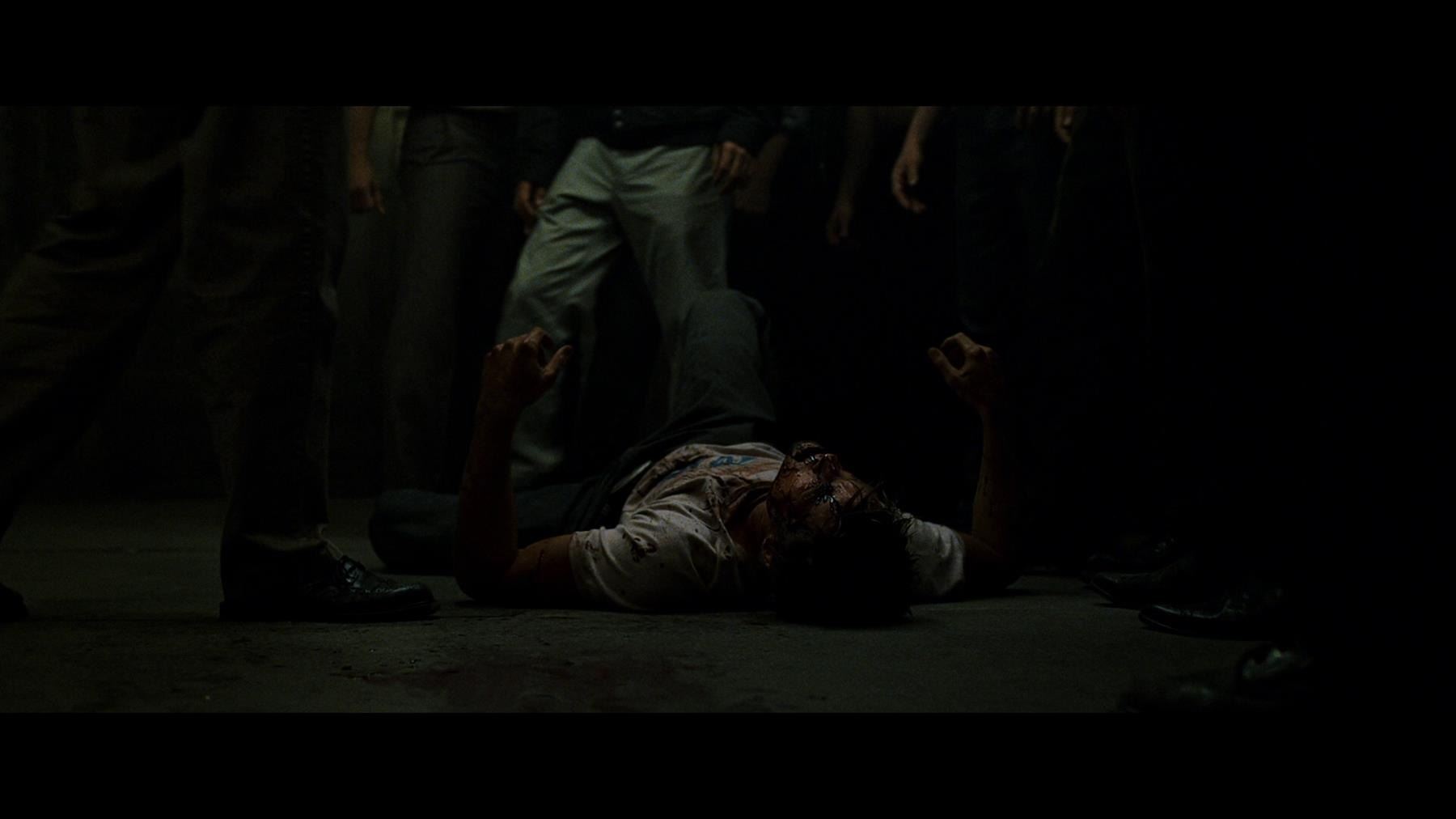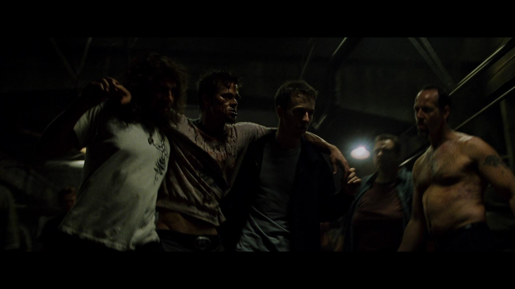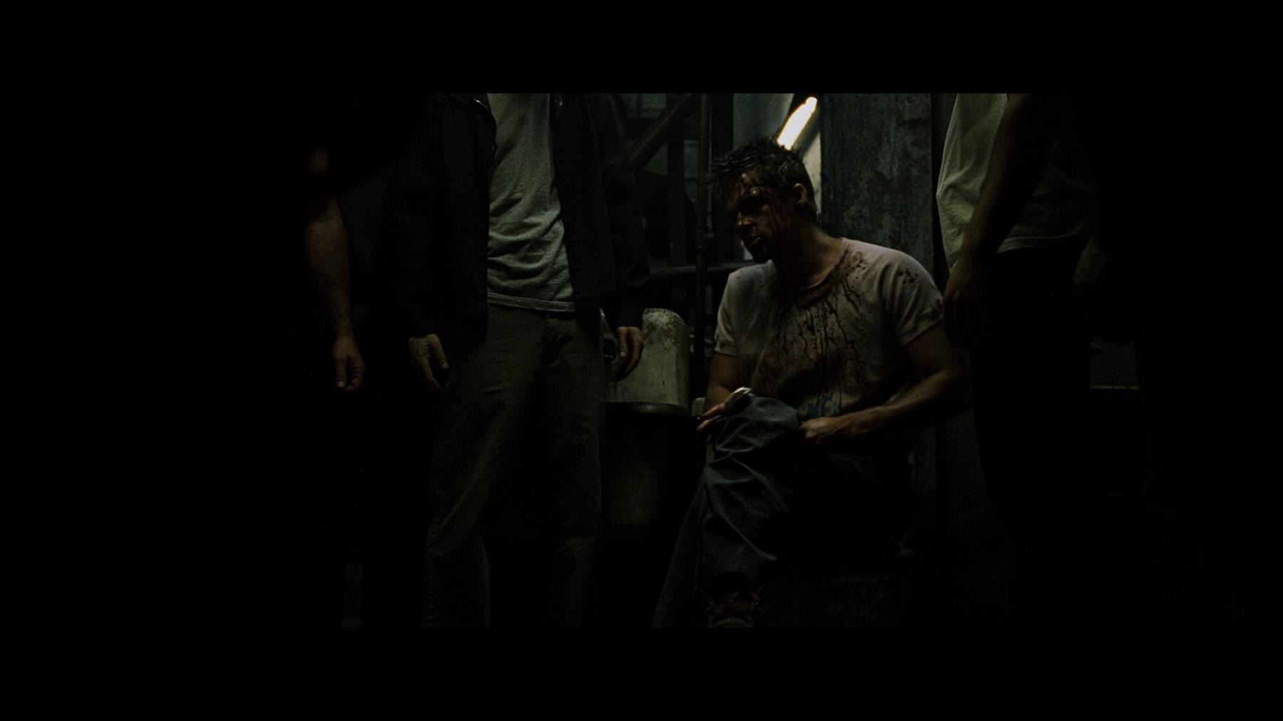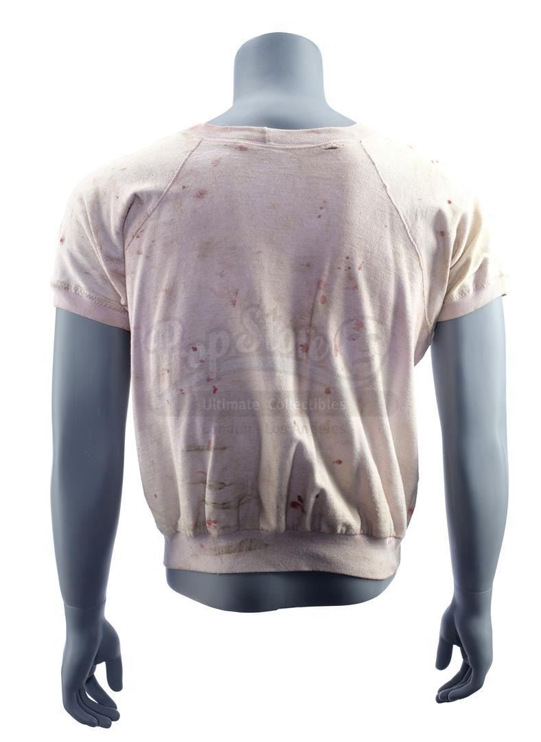 Tyler Durden's (Brad Pitt) screen-matched bloodied "Sock it to Me" shirt from David Fincher's black comedy Fight Club. The shirt screen-matches to the scene where Durden purposely allowed Lou (Peter Iacangelo) to beat him for holding a fight club in the basement of Lou's Tavern without permission.