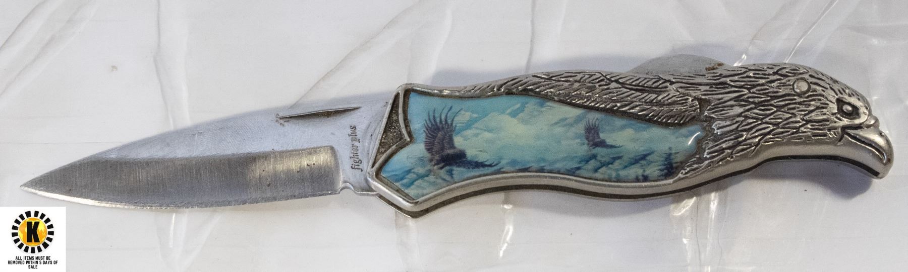 FIGHTER PLUS METAL EAGLE ORNATE LOCK BACK KNIFE