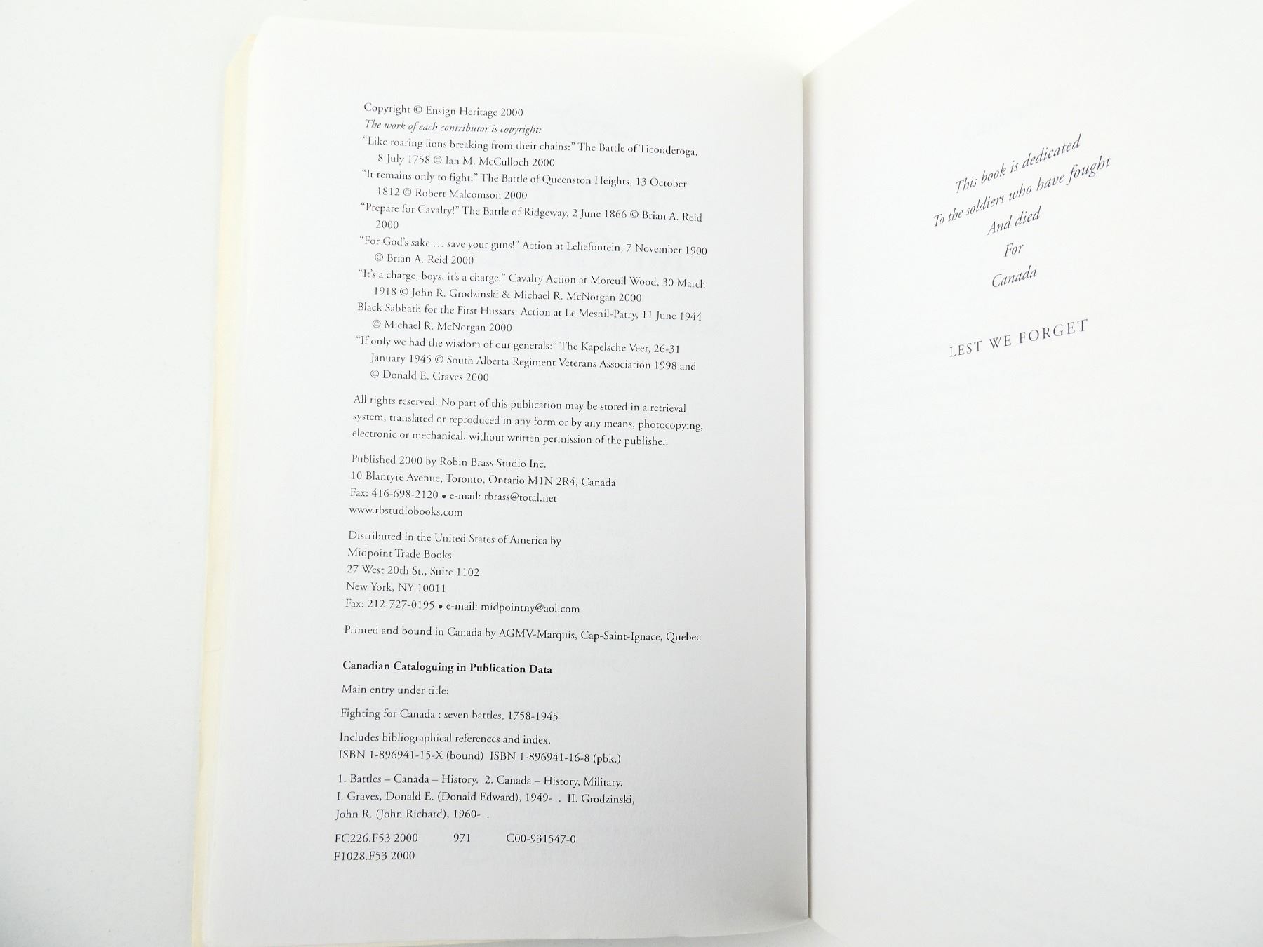 "FIGHTING FOR CANADA, SEVEN BATTLES, 1758-1945" BOOK