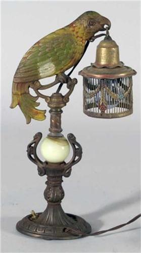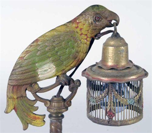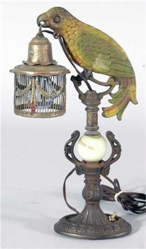 FIGURAL CAST IRON PARROT LAMP, 15" high with original paint, rewired with new switch,, CONDITION: excellent, PACKING AND SHIPPING BY FAIRFIELD AUCTION WITHIN CONTINENTAL USA (excluding insurance) $30