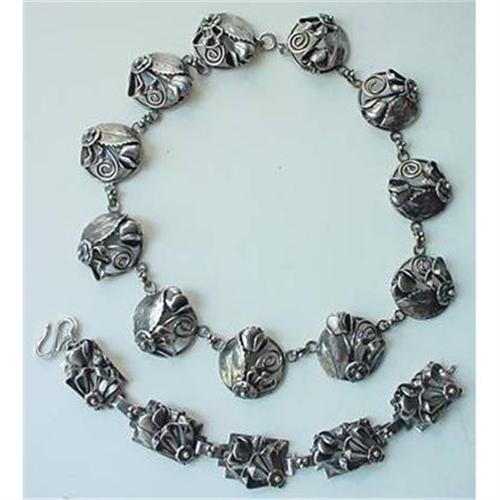 <tr><td>Title:FIGURAL Hobe Sterling Necklace and Bracelet</td></tr>
