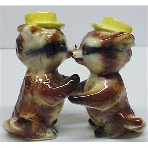 <tr><td>Title:FIGURAL SALT & PEPPER - HUGGING RACCOONS</td></tr>