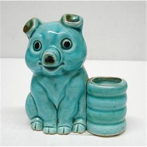 ADORABLE ANTIQUE FIGURAL TOOTHPICK HOLDER, DEPICTING WHAT IT SEEMS "WIDE EYED HAPPY PIG", THIS IS ADORABLE AND UNIQUE HOLDER FOR A SERIOUS COLLECTOR, as per images - MEASURING ABOUT 3 1/2" HIGH,Excellent used condition,US Buyer to pay 8.00 for shipping plus insurance.THANKS.