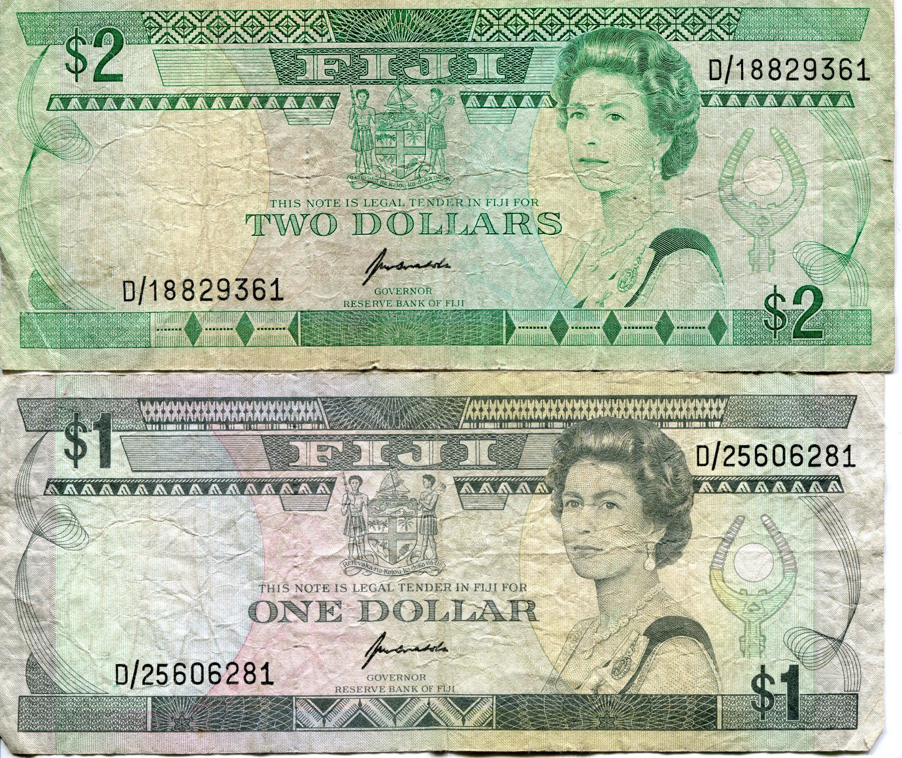 FIJI $1 & $2 BANK NOTES