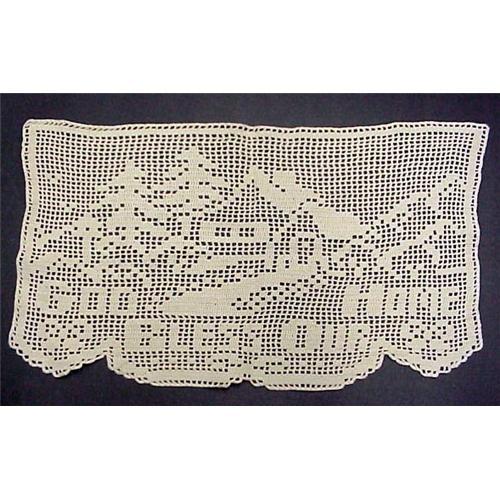 Gorgeous large hand crocheted filet lace piece, made to adorn the back of the sofa or a large chair,Depicting lovely house and: GOD BLESS OUR HOME, I have seen these framed against dark background and it looks GREAT!, US Buyer please pay 4.30 for insured shipping,Thank You for looking!.