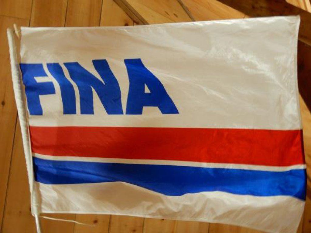 FINA NYLON FLAG 55" X 36" - GOOD CONDITION LOCATION: UPPER HANGING