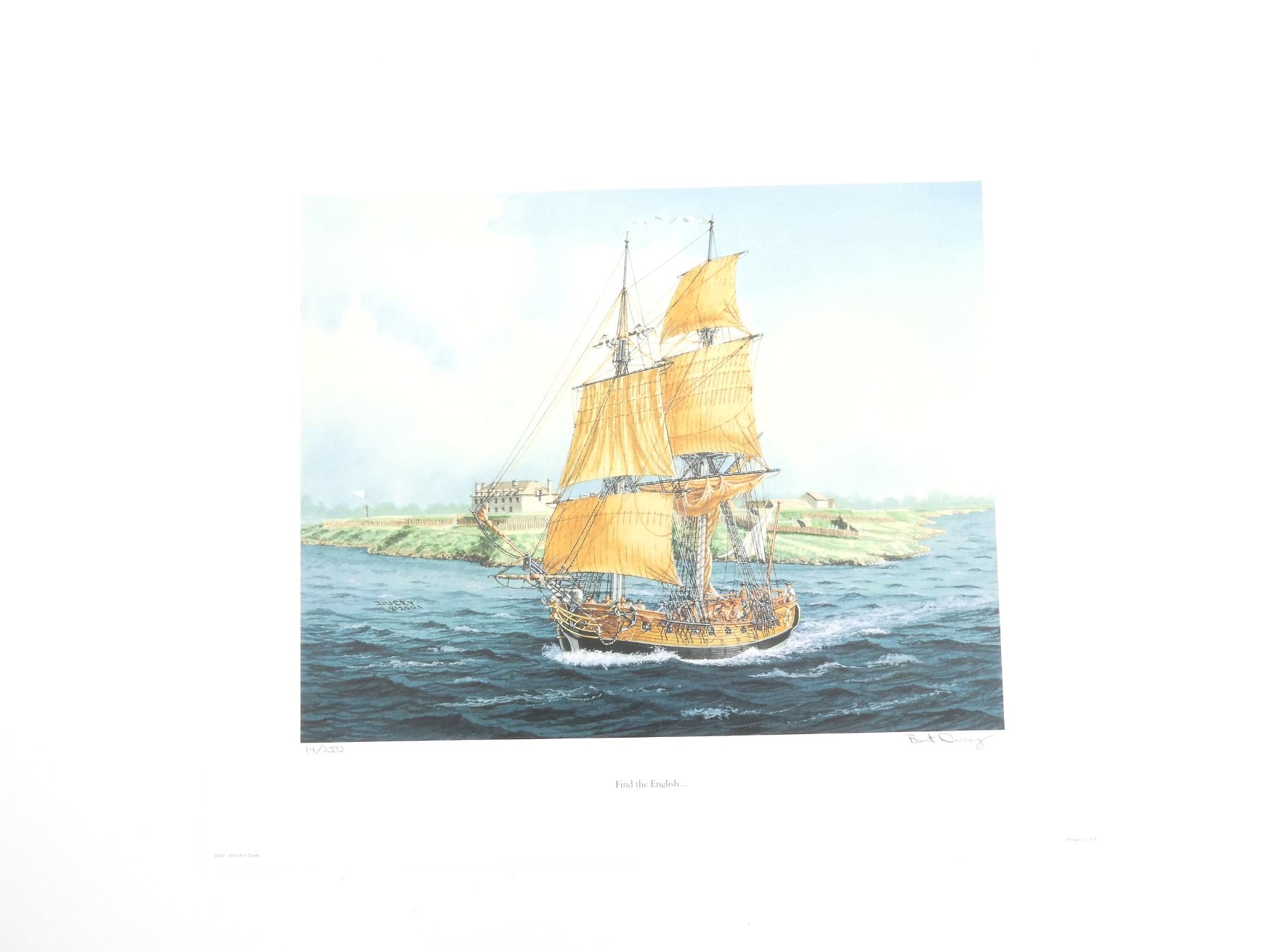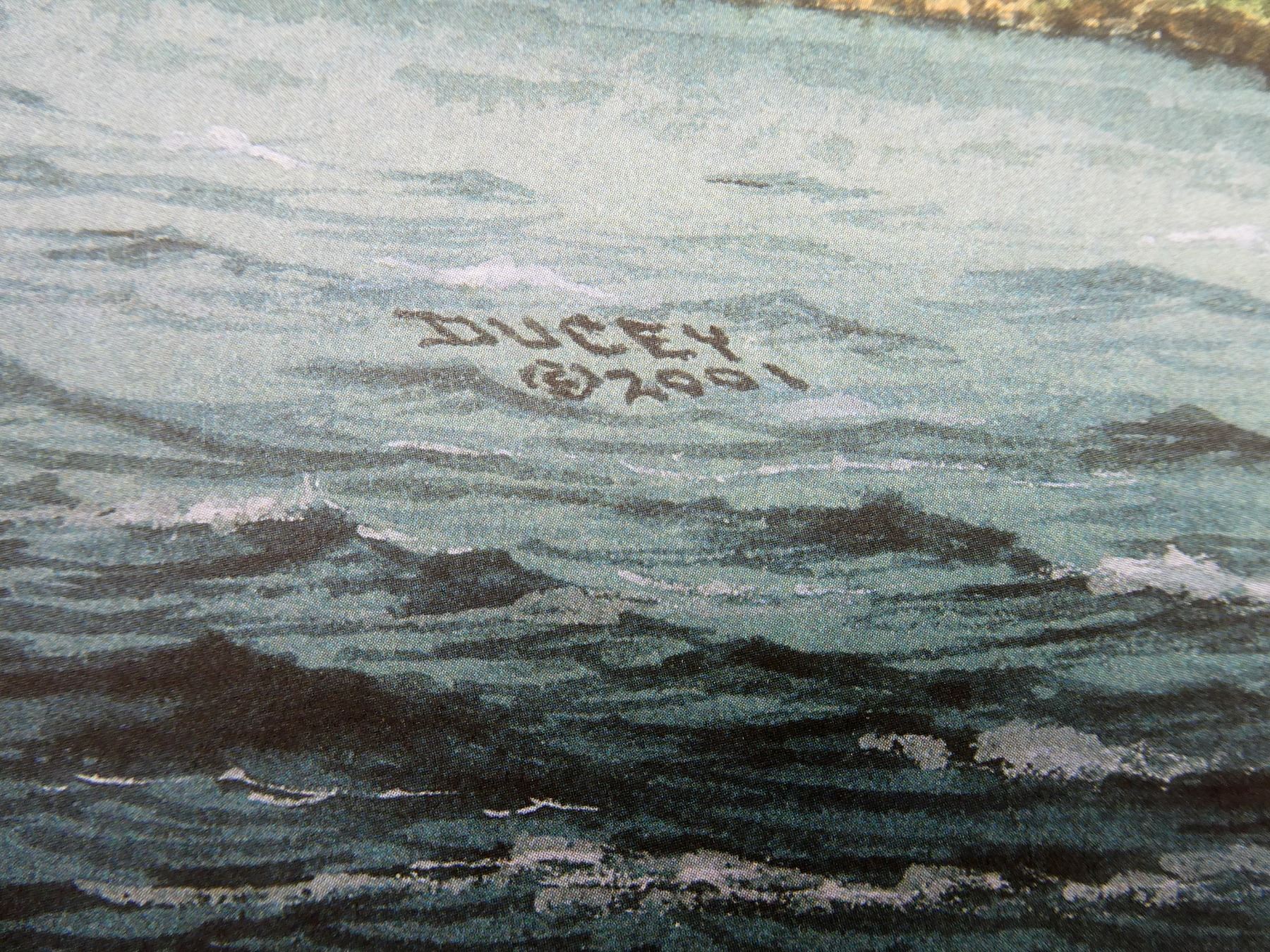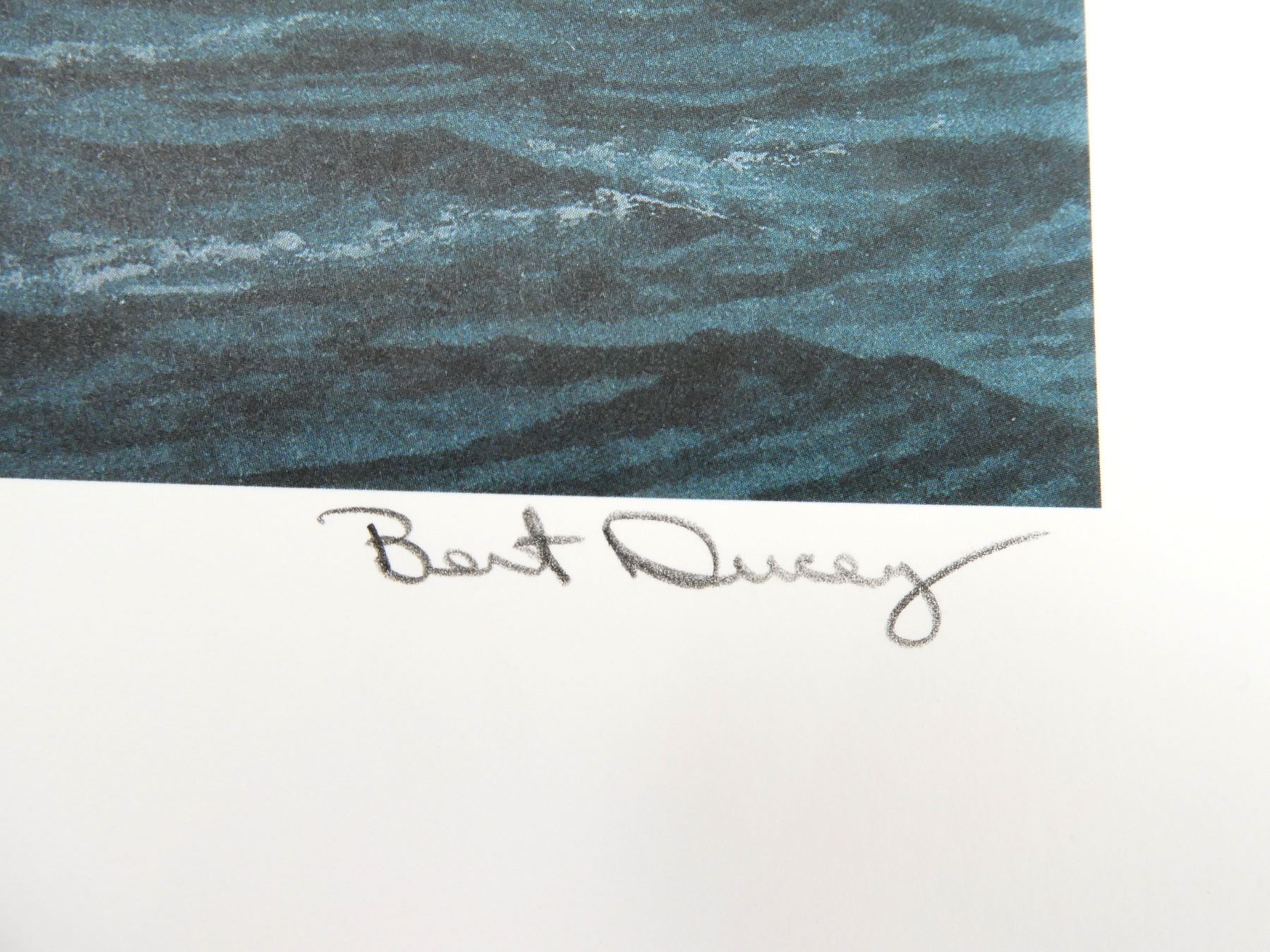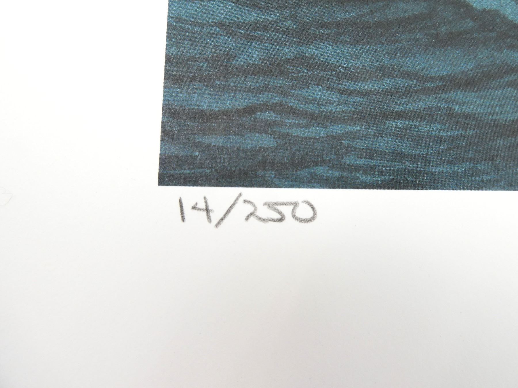 (1) BY BURT DUCEY, SIGNED BY ARTIST, PRINT NO. 14 / 250, COPYRIGHT 2001, SOME RIPPLING / STAINING / CREASING AND/OR SMALL TEARS ALONG EDGES, PRINT APPROX. 18 5/8" X 16". SEE PHOTOS.