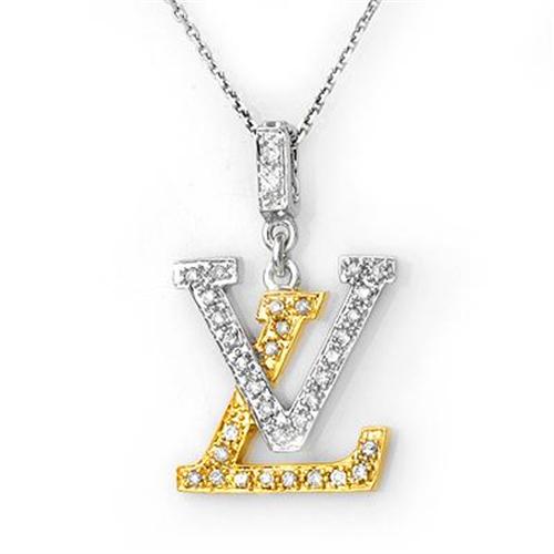 piece. This captivating pendant features a unique V&L design sculpted in glittering two-tone gold and dotted with glittering diamond accents.<BR><BR>For thousands of years, diamonds, as the birthstone of April, are known for its elegance, brilliance and purity, and also as a woman's best friend.