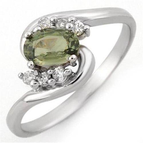 0.70 ctw DIAMOND & GREEN SAPPHIRE LADIES FANCY RING IN 10K WHITE GOLD