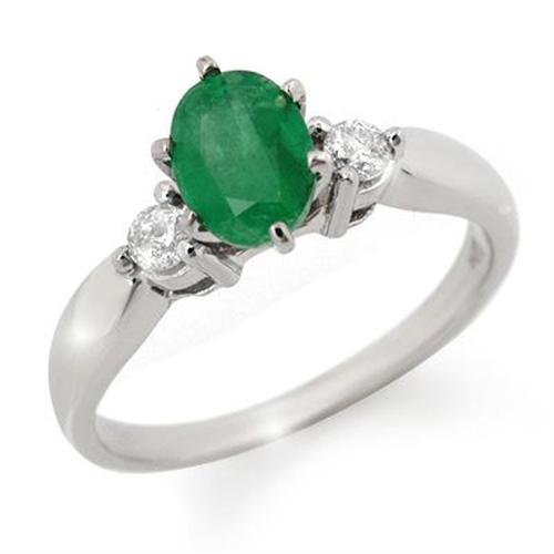 Set the standard for sophistication with this emerald and diamond white gold ring. Radiating a lush green hue an oval emerald is prong in the center framed by two shimmering diamonds.<BR><BR>The name emerald comes from the Greek smaragdos,which means "green gemstones".This birthstone of May is believed to have the power to protect the chastity of the wearer and to ward off evil spirits.