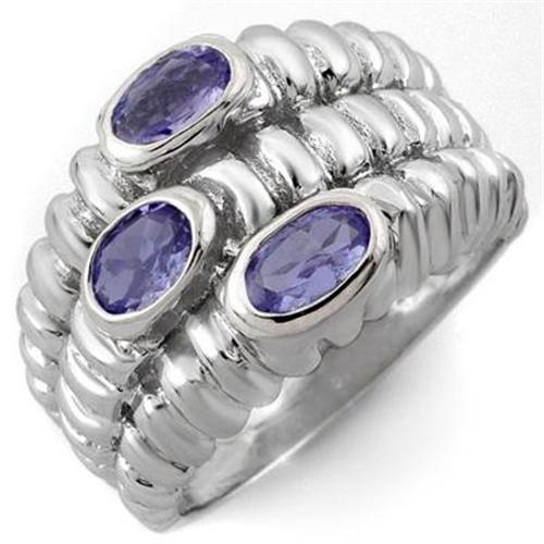 Stylish and vibrant, this stunning three-ring set reflects a warm festive look. Three tanzanite are all bezel-set. All the gems sit atop three gleaming white gold bands.<BR><BR>This popular and fashionable gemstone, known as the birthstone of December, is famous for its spectacular violet-blue color.