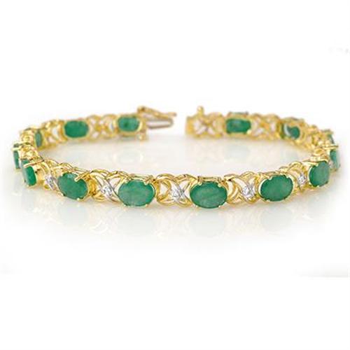 This elegant yellow gold bracelet combines the enchanting green color of oval prong set emerald gemstones with the dazzle of diamonds. The diamonds are set in hugs and kisses design.<BR><BR>Also known as the traditional gemstone for the astrological signs of Cancer and Taurus.