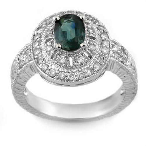 VINTAGE STYLE 2.08 ctw DIAMOND & BLUE SAPPHIRE LADIES RING IN 14K WHITE GOLD