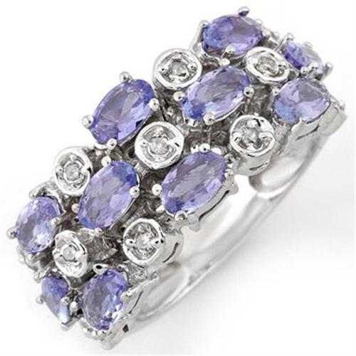 The violet glow of tanzanite highlights this elegant ring. Three rows of prong-set oval cut tanzanite alternate with round diamonds add a lively touch to this sleek white gold band.<BR><BR>This popular and fashionable gemstone, known as the birthstone of December, is famous for its spectacular violet-blue color.