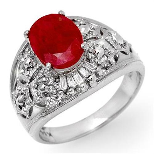 VINTAGE STYLE GENUINE 3.07 ctw RUBY & DIAMOND RING IN 14KT WHITE GOLD
