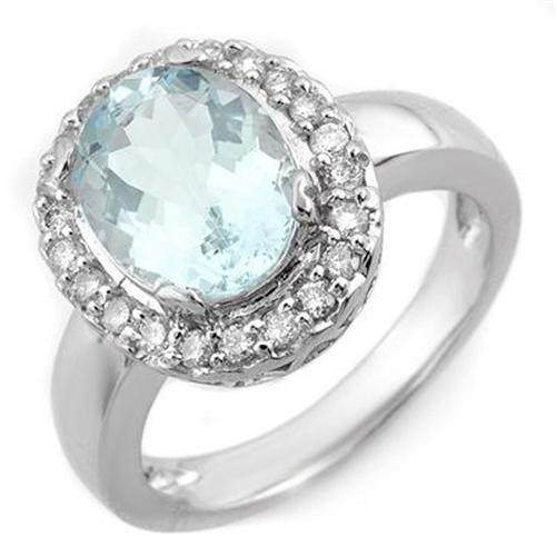A modern design that's sure to impress. One oval cut prong set aquamarine gemstone creates the focal point of this white gold ring. Accented by round pave set diamonds surround the gemstone.<BR><BR>The legend says that this birthstone of March is the treasure of mermaids. also believed to have a soothing influence on married couples.