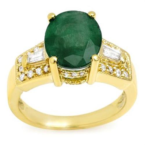 ACA CERTIFIED 4.55ctw DIAMOND & EMERALD RING SET IN 10KT YELLOW GOLD