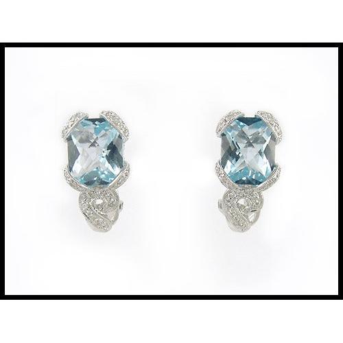 14K white gold earrings are the work of a gifted goldsmith. Fine aquamarine color natural topaz gems and 40 sparkling diamonds are combined in the elegant design, stunning on the ear. They weigh 6.32 grams. They measure 22mm (7/8") long. Though $1,100.00 was more than fair, you can own them for small fraction of that.