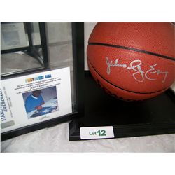 "DR. J" JULIUS ERVING HAND SIGNED BASKETBALL IN DISPLAY CASE