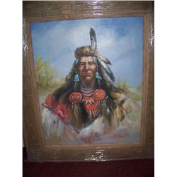 D. LEE, ORIGINAL OIL ON CANVAS PORTRAIT OF AN INDIAN WARRIOR. SIGNED LOWER RIGHT, FRAMED