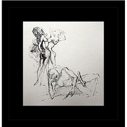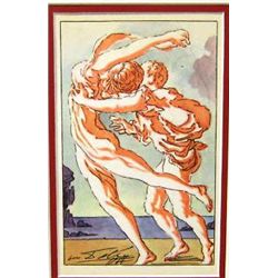 66 YEAR OLD ANTIQUE SALVADOR DALI LITHOGRAPH (1945) - SIGNED IN THE PLATE 1945 - PROFESSIONALLY FRAMED AND MATTED - PAPER 5"X8" - FRAMED 1...