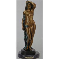 NUDE ON TREE BRONZE SCULPTURE - AFTER A. MOREAU - BEAUTIFUL COLOR PATINA - MOUNTED ON A FINE ITALIAN MARBLE BASE - BEAUTIFULLY DETAILED - 26"H...