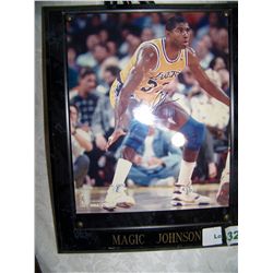 MAGIC JOHNSON HAND SIGNED "LA LAKERS BASKETBALL" PLAQUE