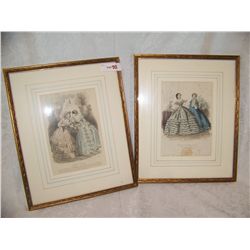LOT OF (2) ANTIQUE HAND COLORED ETCHINGS, NICELY FRAMED