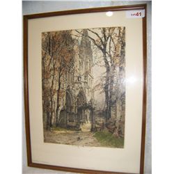 "CHARTNES CATHEDRAL" BY L. KASIMAR HAND SIGNED ORIGINAL HAND COLORED ETCHING