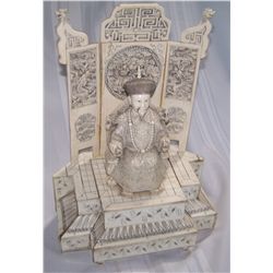 WORK MADE IN 1ST QUARTER OF 20TH CENTURY 1916-1920. 14T X 10W X 7 D. EMPEROR SEATED ON THRONE, MADE OF WOOD & IVORY. SOME IVORY MISSING FROM B...