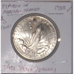 1988 REPUBLIC OF MARSHALL ISLANDS $5 SPACE SHUTTLE DISCOVERY SILVER COIN