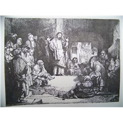 Artist: After Rembrant Harmensz Van rijn (1606-1669) Title: Christ Preaching Size: (Image Size 6 x 8 1/4 inches) Framed in classic si