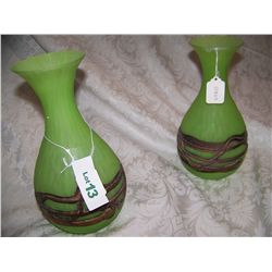 (2X$)MATCHING HAND BLOWN FINE ART GLASS & BRONZE VASES