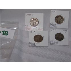(4x$) U.S SILVER STANDING LIBERTY QUARTERS 1917 (TYPE 1), 1925, 1927,1927-S