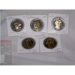 (5X$) COLLECTIBLE SILVER LAYERED U.S PRESIDENTIAL COINS INCLU: WASHINGTON, LINCOLN, JFK & REAGAN
