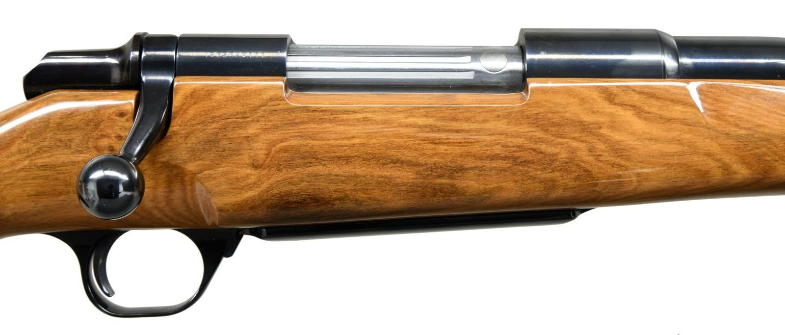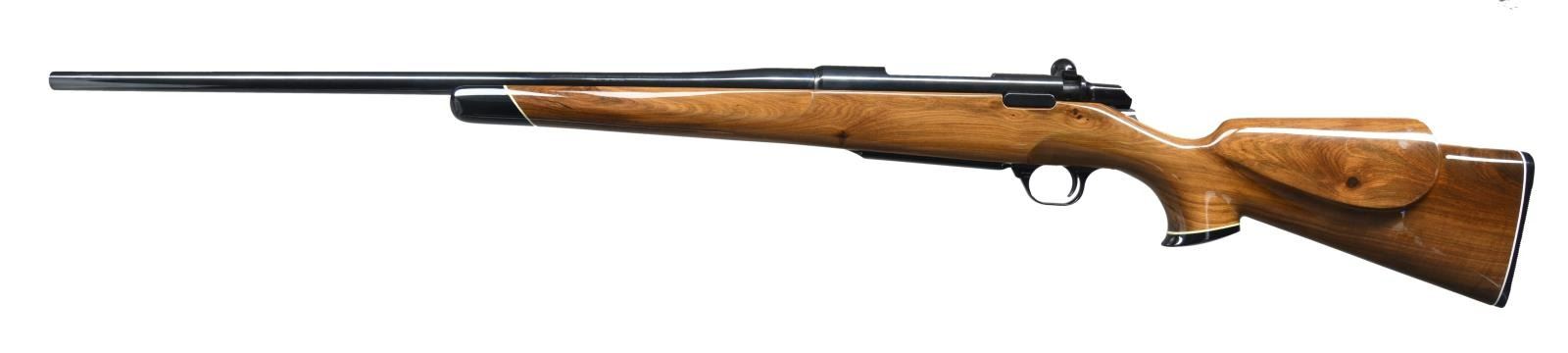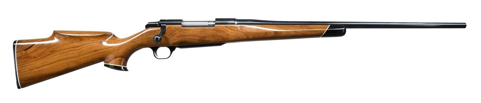 Cal. .338 Winchester Magnum. S# 16353PW117. Bbl 24". BBR manufactured by Miroku in Japan and imported by Browning Arms Company. High polish blue finish with Reinhart Fajen tambootie wood buttstock. Receiver is factory drilled and tapped over the chamber and receiver bridge. CONDITION: near excellent, with emtal components retaining bountiful amounts of their original factory blue finish, exhibiting few minor superficial marks from handling and storage. Mirror bore, exhibiting well defined rifling throughout. Bolt face is excellent. Stock is excellent, exhibiting few minor superficial handling marks. (23-2189/MLW). MODERN. $500-800.